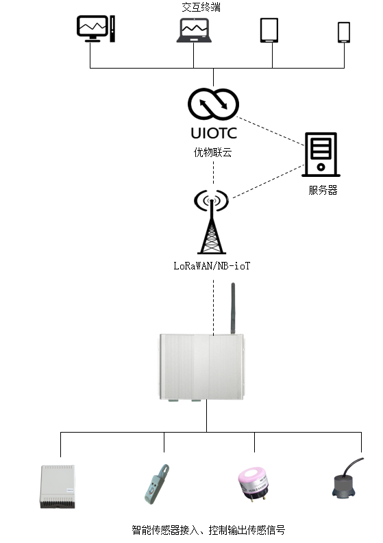 數(shù)據(jù)通過(guò)網(wǎng)絡(luò)傳輸,配合UIOTC優(yōu)物聯(lián)網(wǎng)云平臺(tái),可以在電腦、手機(jī)、平板電腦等多個(gè)終端訪問(wèn)。根據(jù)遠(yuǎn)程返回的數(shù)據(jù),工作人員不到現(xiàn)場(chǎng)也可以監(jiān)測(cè)現(xiàn)場(chǎng)環(huán)境情況,并對(duì)出現(xiàn)的參數(shù)超標(biāo)等情況及時(shí)做出相應(yīng)的處理。